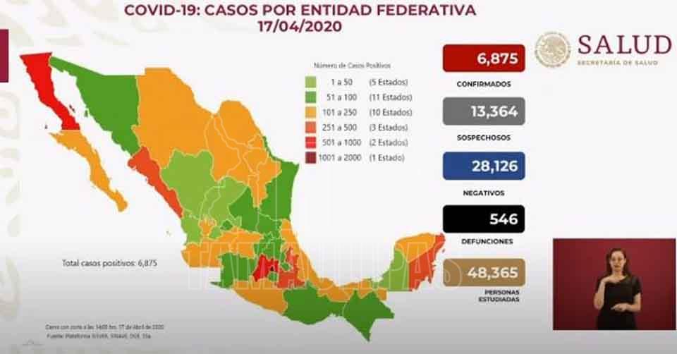 Covid-19: Ya van 546 defunciones y 6,875 contagiados en México