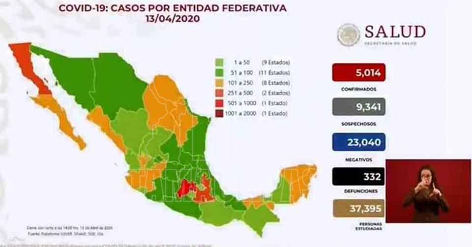 Ya hay 5,014 contagiados y 332 muertos por COVID-19 en México
