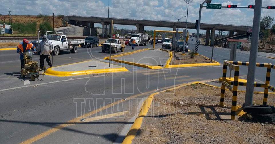 En Nuevo Laredo: Dan mantenimiento a señales viales de carretera Anáhuac
