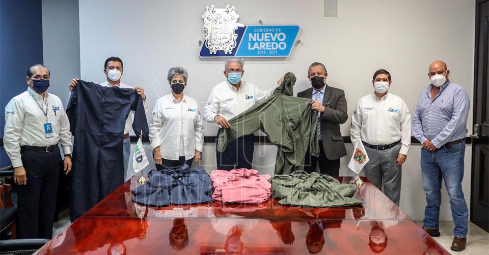 Dona Arturo Sanmiguel trajes anti Covid al IMSS de Nuevo Laredo