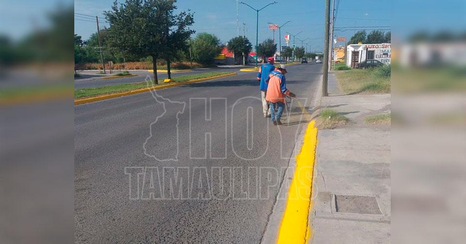 En Nuevo Laredo: Dan mantenimiento a cordones y camellones de avenida Monterrey