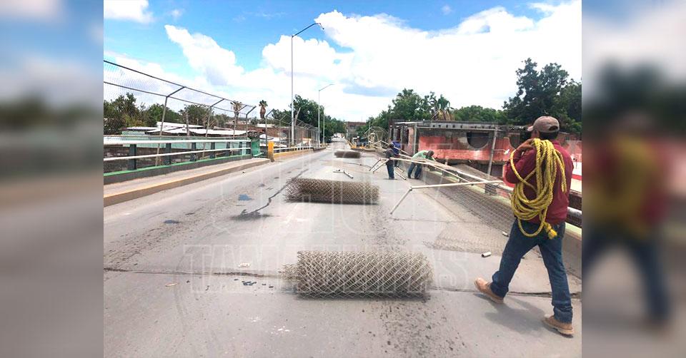 En Nuevo Laredo: Retiran malla dañada de puente Venezuela