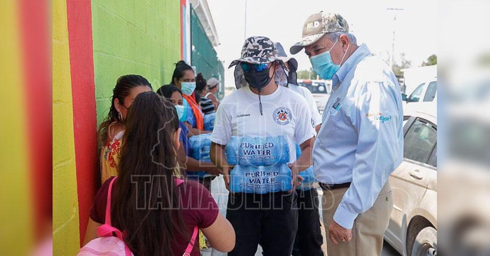 Alcalde de Nuevo Laredo lleva agua embotellada y de uso doméstico a Bayito 2 y Blanca Navidad