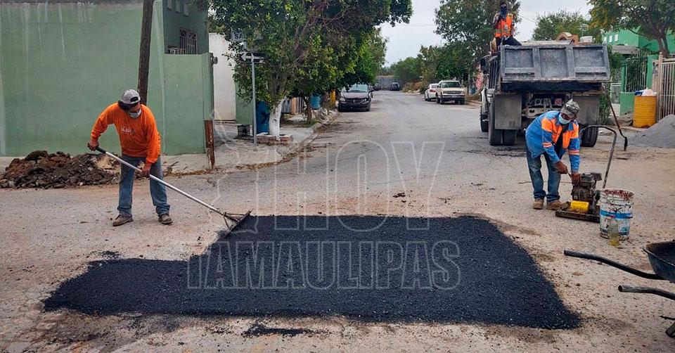 Reparan vialidades en Valles del Paraíso en Nuevo Laredo