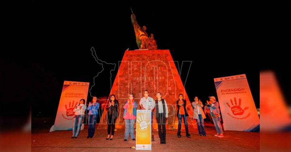 En Nuevo Laredo: Iluminan color naranja monumentos por la no violencia contra las mujeres