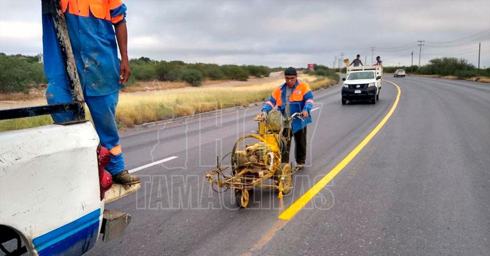 Pintan señales viales en Segundo Anillo Periférico de Nuevo Laredo