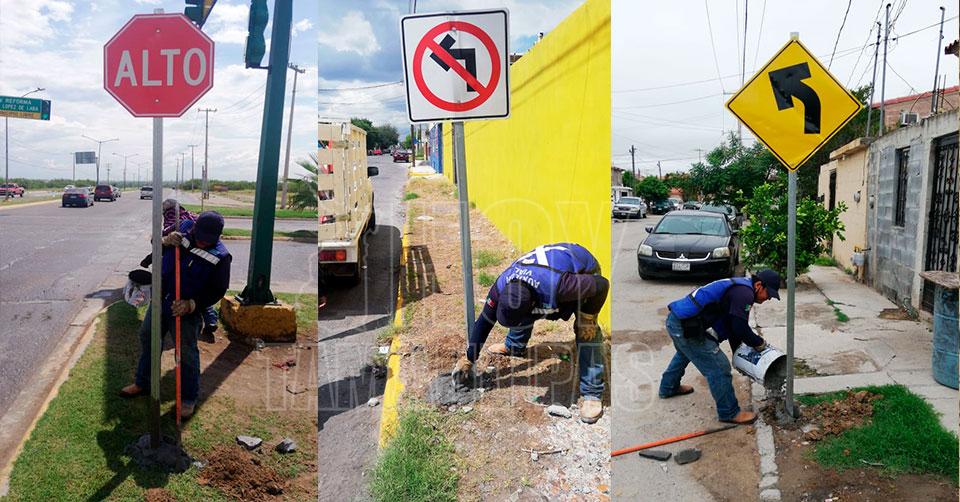 Realizan cambios y reposiciones de señalamientos viales de Nuevo Laredo