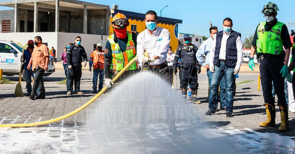 Encabeza Enrique Rivas sistema de desinfección en Puente 1