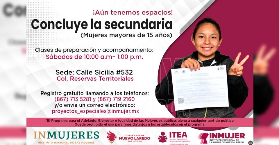 Mantiene Inmujer Nuevo Laredo convocatoria abierta de educación secundaria