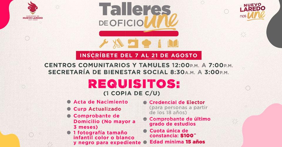 Continuan abiertas las inscripciones para talleres de oficios UNE en Nuevo Laredo