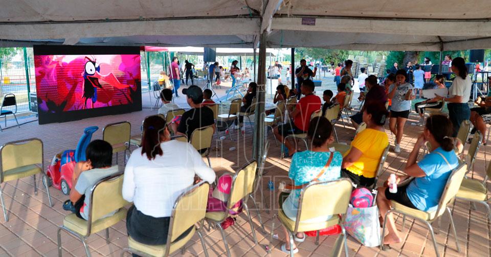 Disfrutan familias de Nuevo Laredo “Cine UNE” en el parque Viveros