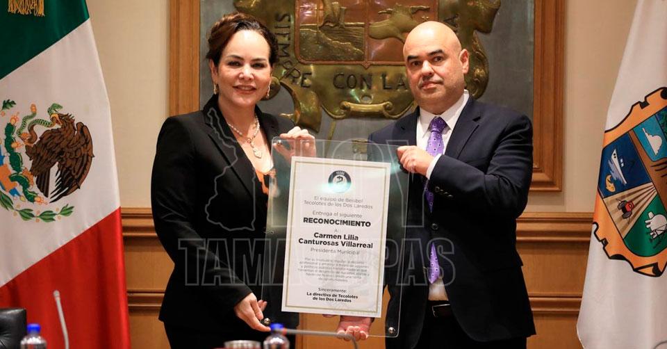 Reconocen Tecolotes de los dos Laredos a Carmen Lilia Canturosas por su impulso al deporte