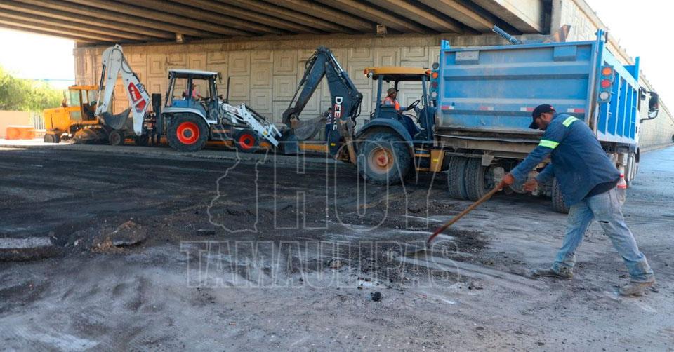 Inicia gobierno de Nuevo Laredo recarpeteo en retornos del Puente “La Corona”