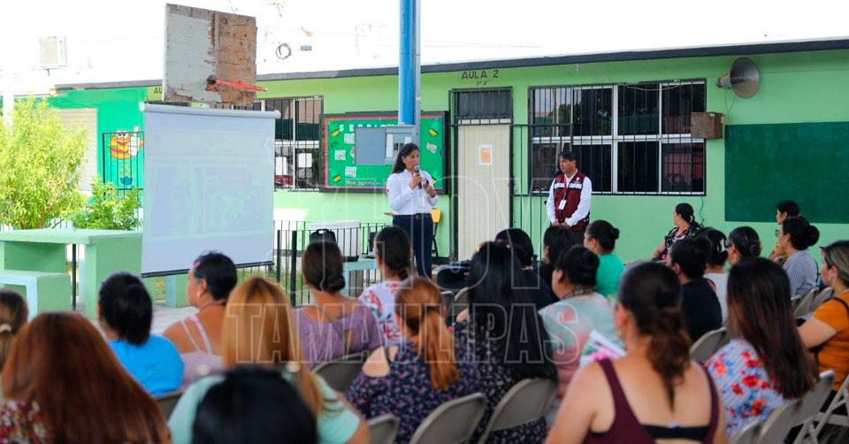 Brinda tránsito y vialidad de Nuevo Laredo pláticas a padres y docentes de primaria Arquímedes Caballero para evitar accidentes viales