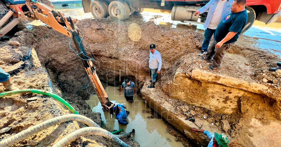 Concluye Comapa Nuevo Laredo trabajos de reparación de tubo roto en carretera nacional y puente colosio