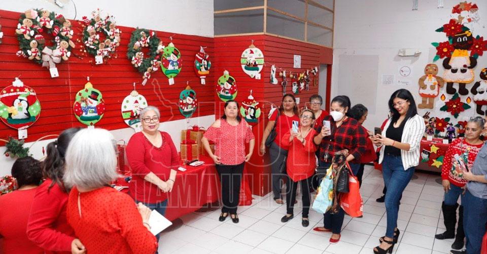 Ofertan abuelitos de Casa Club del Sistema DIF Nuevo Laredo artículos elaborados en su taller