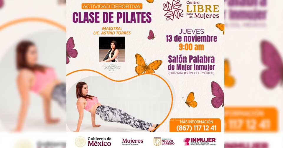 Invitan a mujeres de Nuevo Laredo a clase de pilates como parte de la Cartelera Naranja de Inmujer