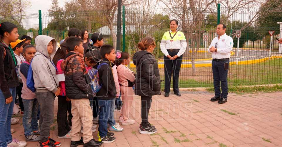Aprenden niños de primaria sobre reglas de tránsito en recorrido por parque vial en Nuevo Laredo