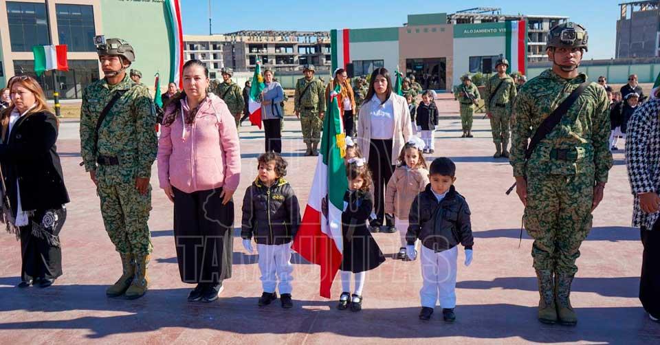 Encabeza Carmen Lilia Canturosas celebración del Día de la Bandera junto a cientos de estudiantes de Nuevo Laredo