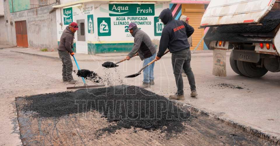 Servicios Públicos mantiene campaña permanente de bacheo en Nuevo Laredo