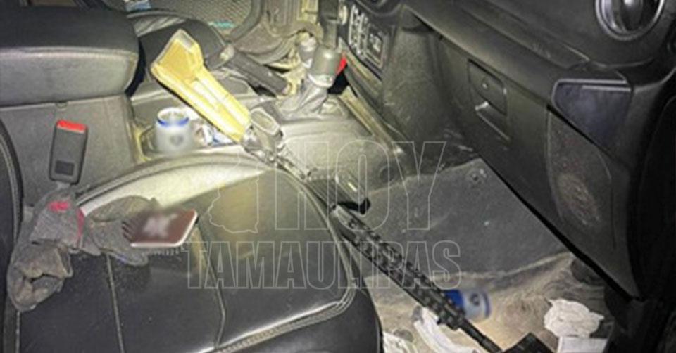 Aseguran arsenal en auto abandonado en BC