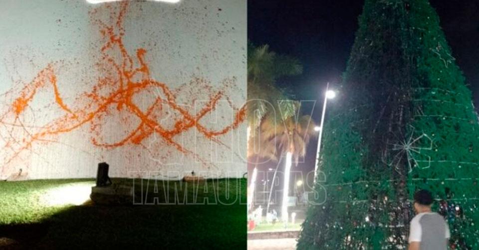 Presuntas feministas prenden fuego a árbol navideño del Congreso de Quintana Roo