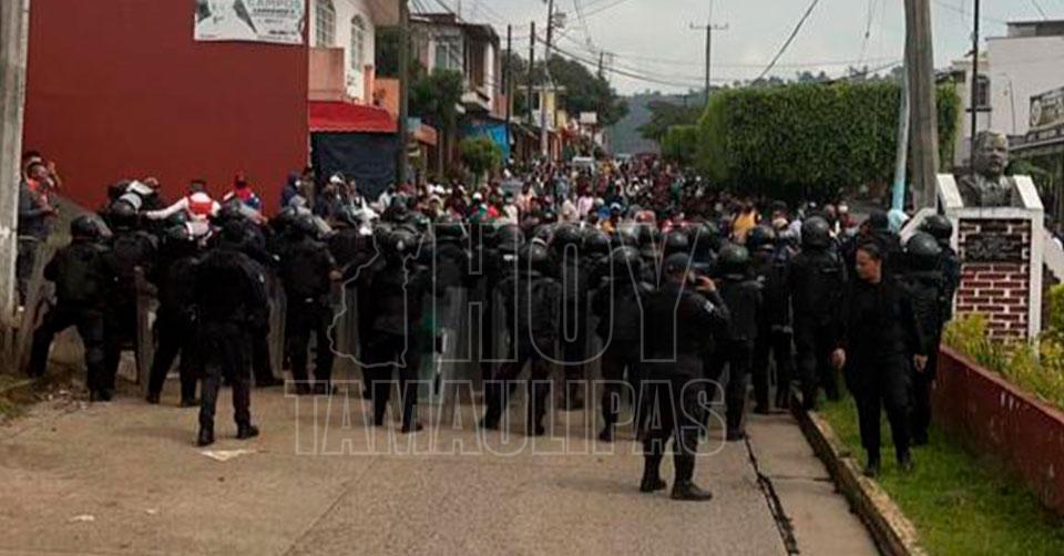 Siete policías lesionados a enfrentarse con maestros en Michoacán