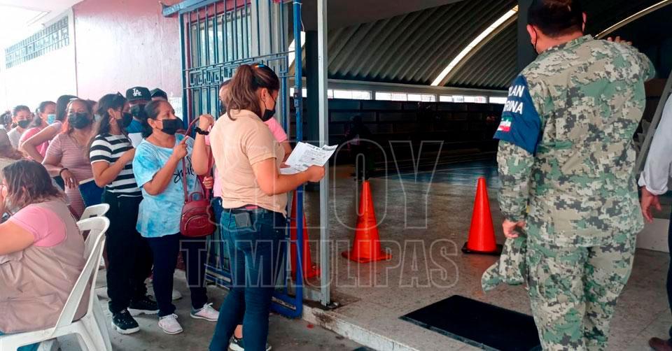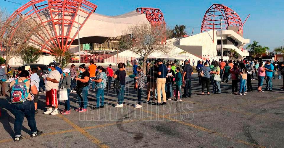 Largas filas de adolescentes para vacunarse contra la Covid-19 en Reynosa