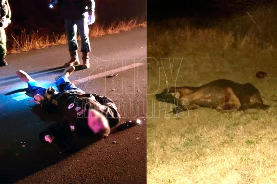 Muere motociclista al chocar contra una vaca en Ciudad Guerrero