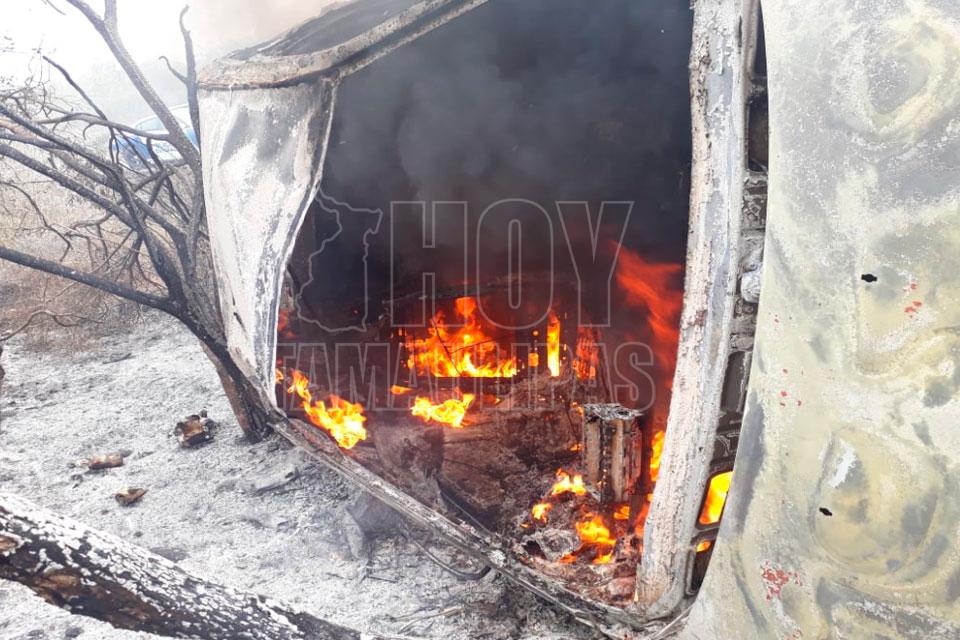 Abandonan carro tras volcar e incendiarse en San Fernando