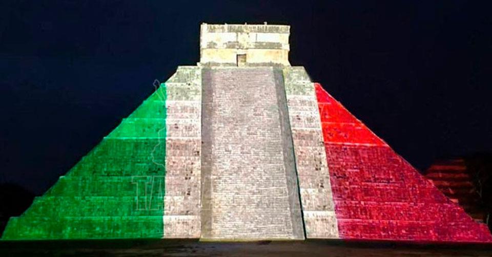Iluminan pirámide de Kukulcán con los colores patrios
