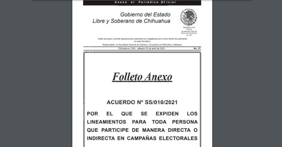 Publican Acuerdos sanitarios para campañas electorales en Chihuahua