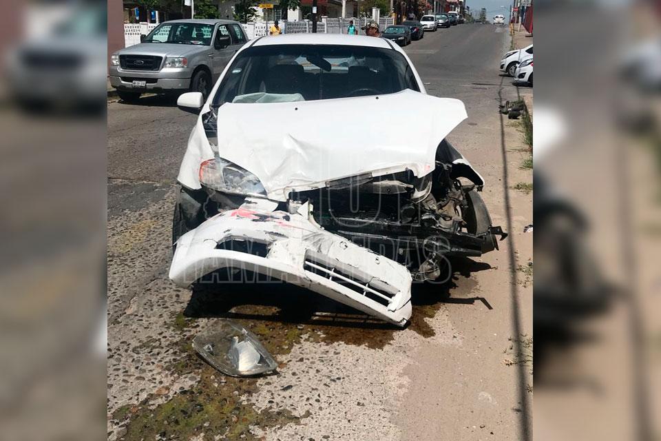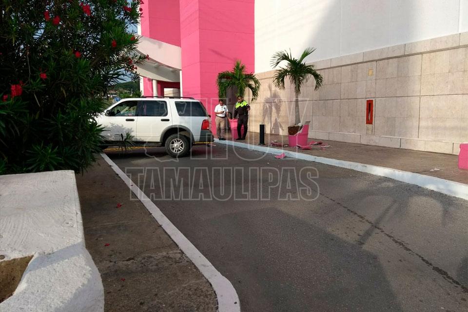 Intenta evitar choque y “se lleva” macetero de tienda en Tampico