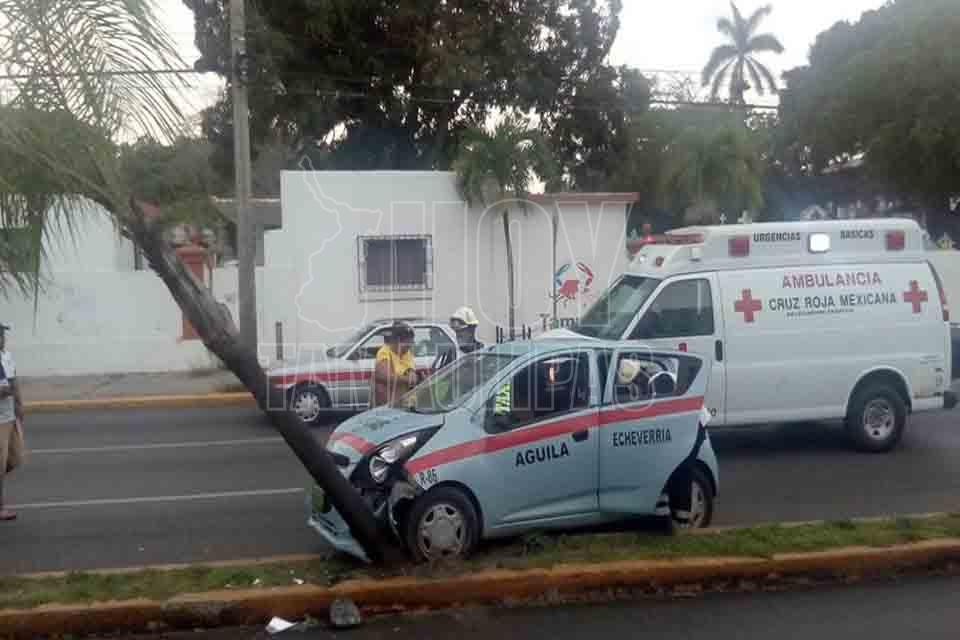 Choca carro de ruta con palmera en Tampico; una lesionada