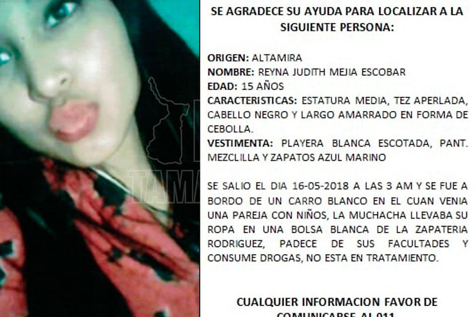 Desaparece jovencita de 15 años en Altamira