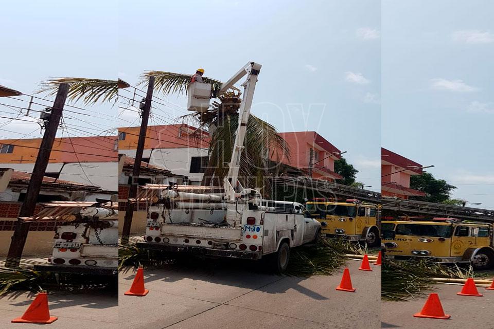 Tumban palmera por peligro de ocasionar apagón en Tampico