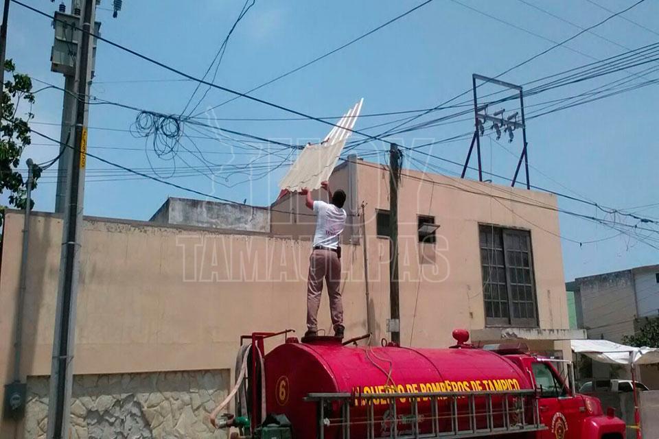 Vuela lámina de techo a causa de ventarrón en Tampico