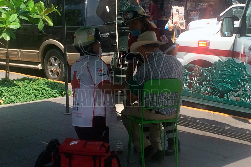 Se desmaya anciano en Plaza de Armas en Tampico