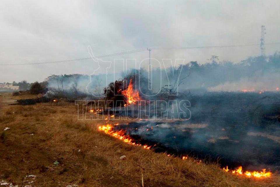 Incendio de pastizal a un costado de fraccionamiento de Altamira