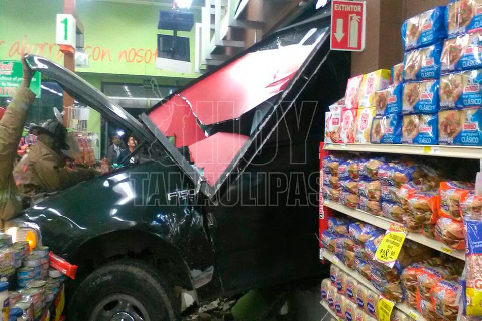 Se meten con todo y camioneta a súper en Tampico