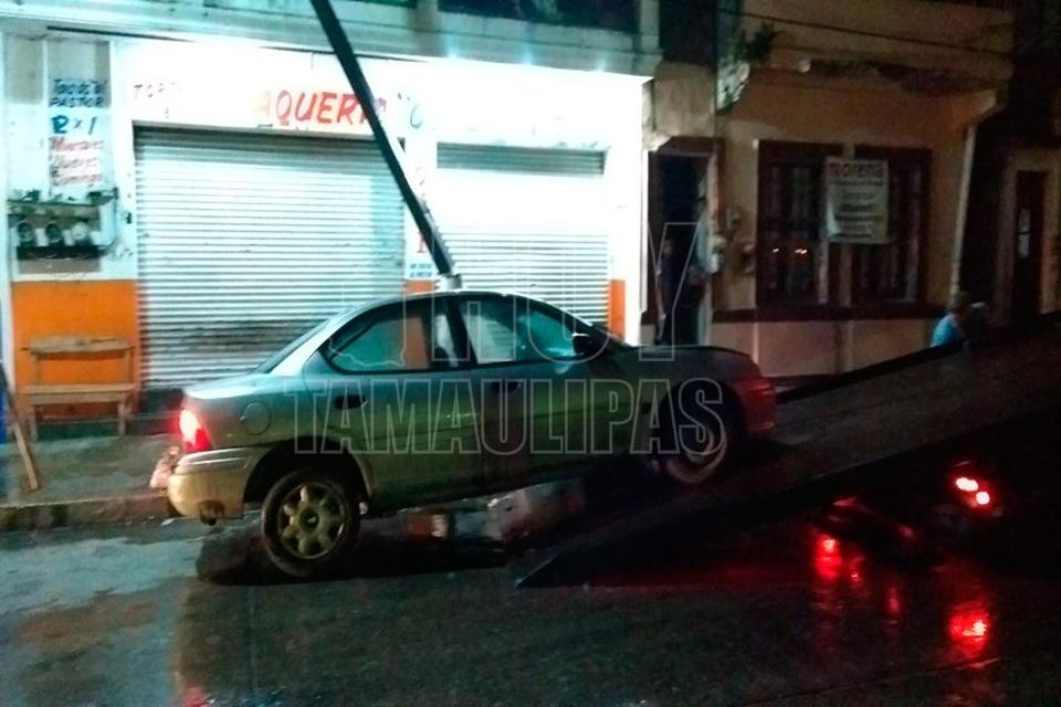 Ebrio conductor choca contra poste en Tampico