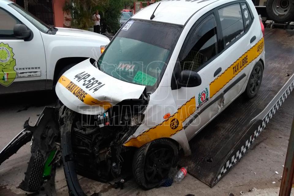 Dos pasajeros de Taxi heridos al chocar en Tampico