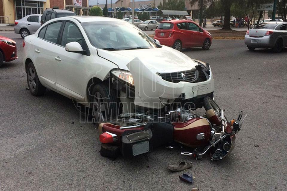 Motociclista es derribado por distraído automovilista en Ciudad Victoria