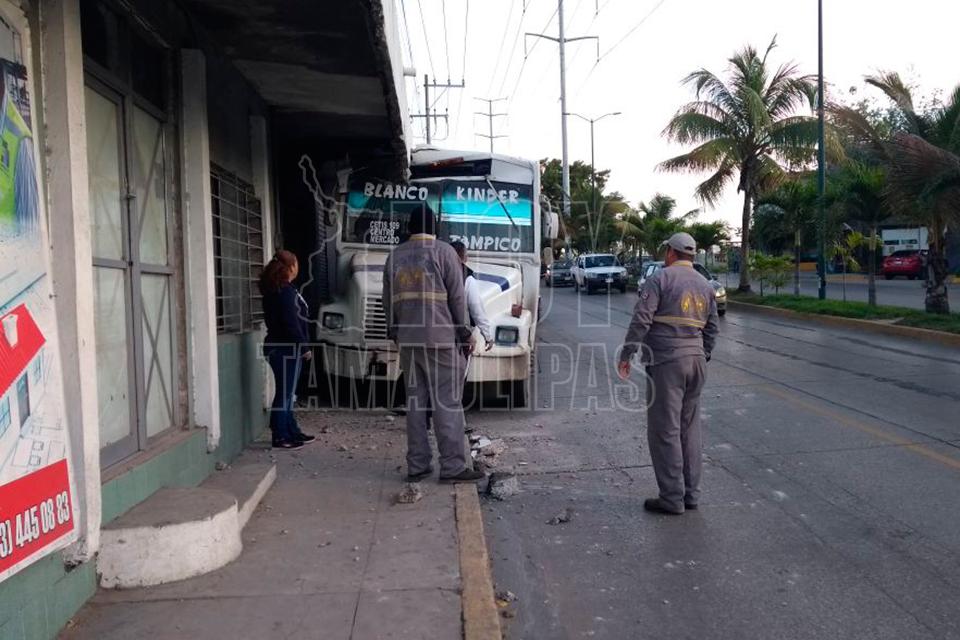 Autobús se impacta contra cornisa en Madero, 20 lesionados