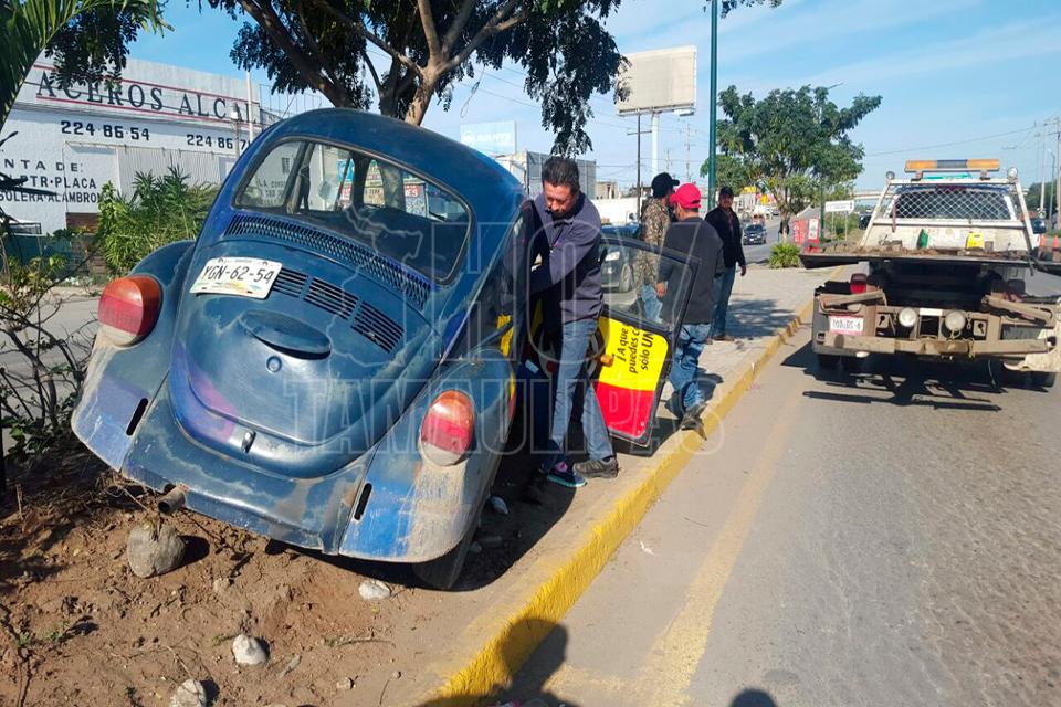 Se queda sin frenos y choca su “vocho” contra árbol en Altamira