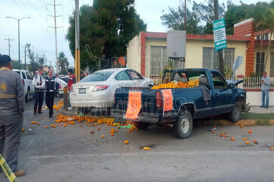 Naranjero ocasiona choque en Madero; herida mujer y su hijo