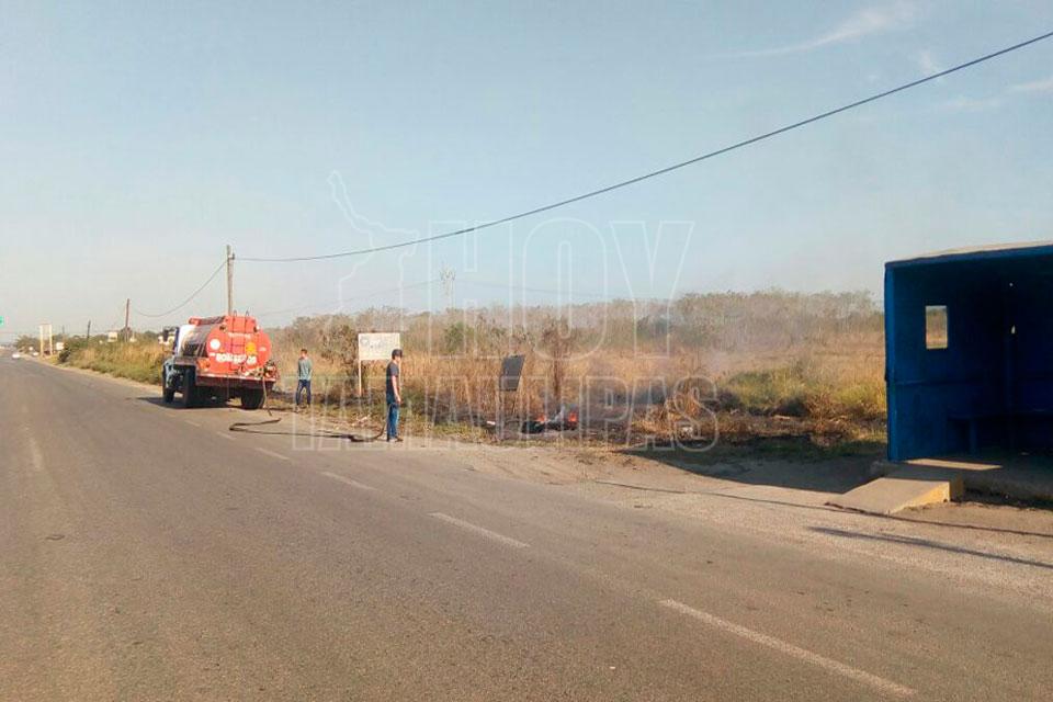 Se registra incendio frente a gasolinera de Cuauhtémoc en Altamira