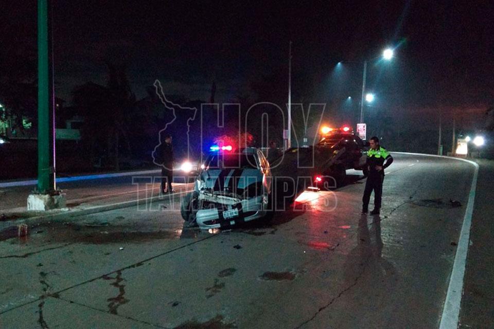 Choca contra poste de vídeo vigilancia y huye en Tampico
