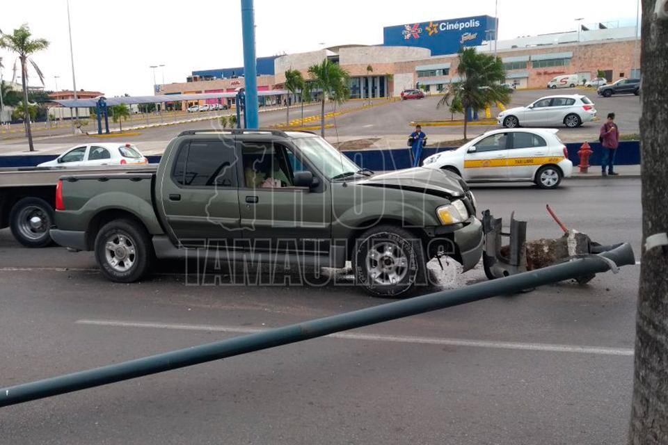 Le invaden carril y choca contra poste en Tampico