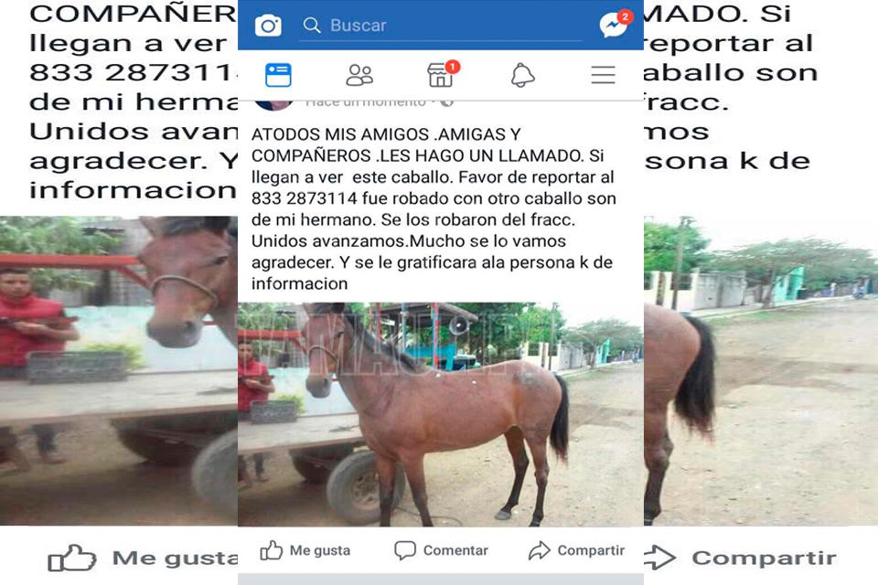 Denuncian por Facebook robo de caballo en Altamira